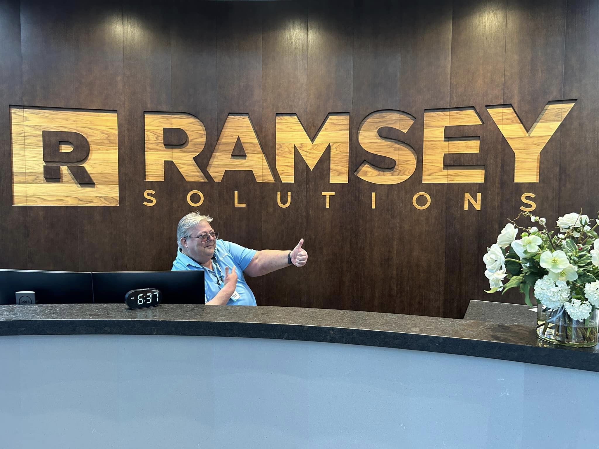Arrived at Dave Ramsey HQA Ramsey Preferred Coach mans the front desk.Meeting Dave Ramsey and living the dream. Definitely feeling “We’re not worthy!” Wayne’s World vibes!