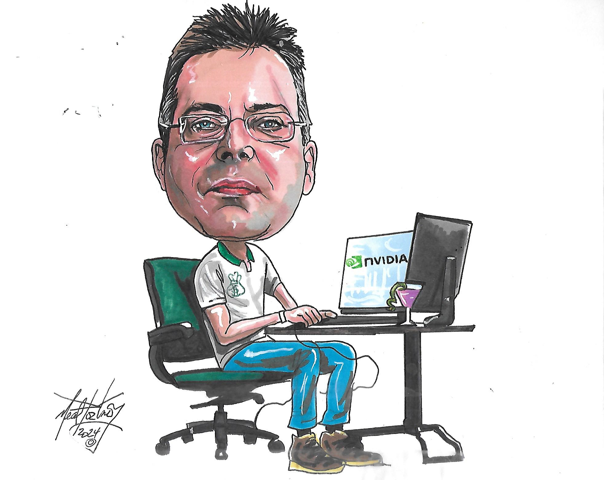 Receiving my portrait from Internationally Recognized Illustrator Neal Portnoy